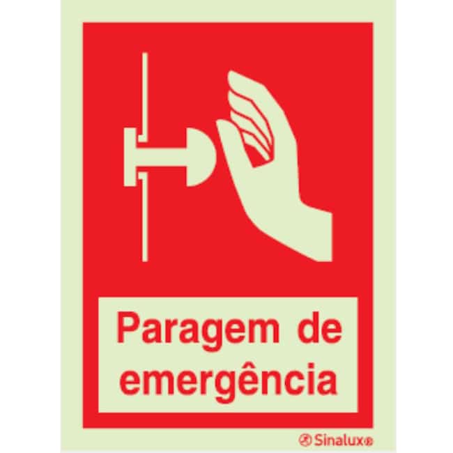 Sinal de “Paragem de Emergência”, fotoluminescente.